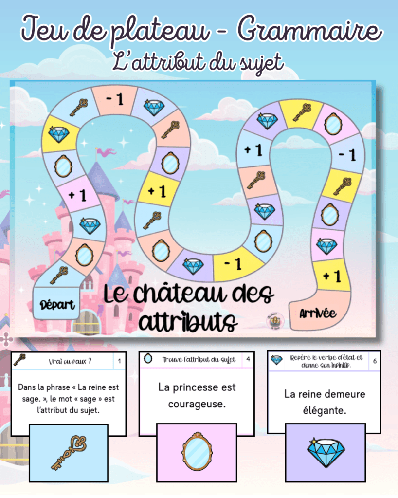 Aujourd’hui je vous présente un jeu autour de l’attribut du sujet : Le château des attributs !