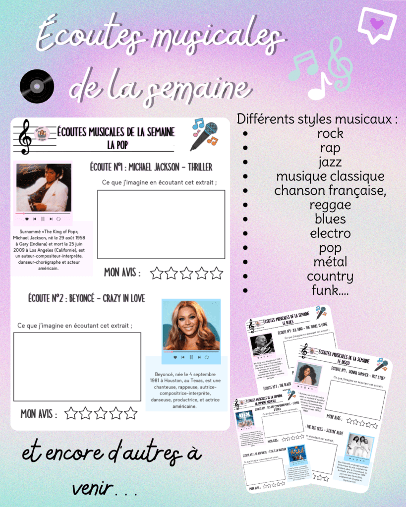 Chaque fiche invite les élèves à écouter, imaginer et ressentir la musique à sa façon.